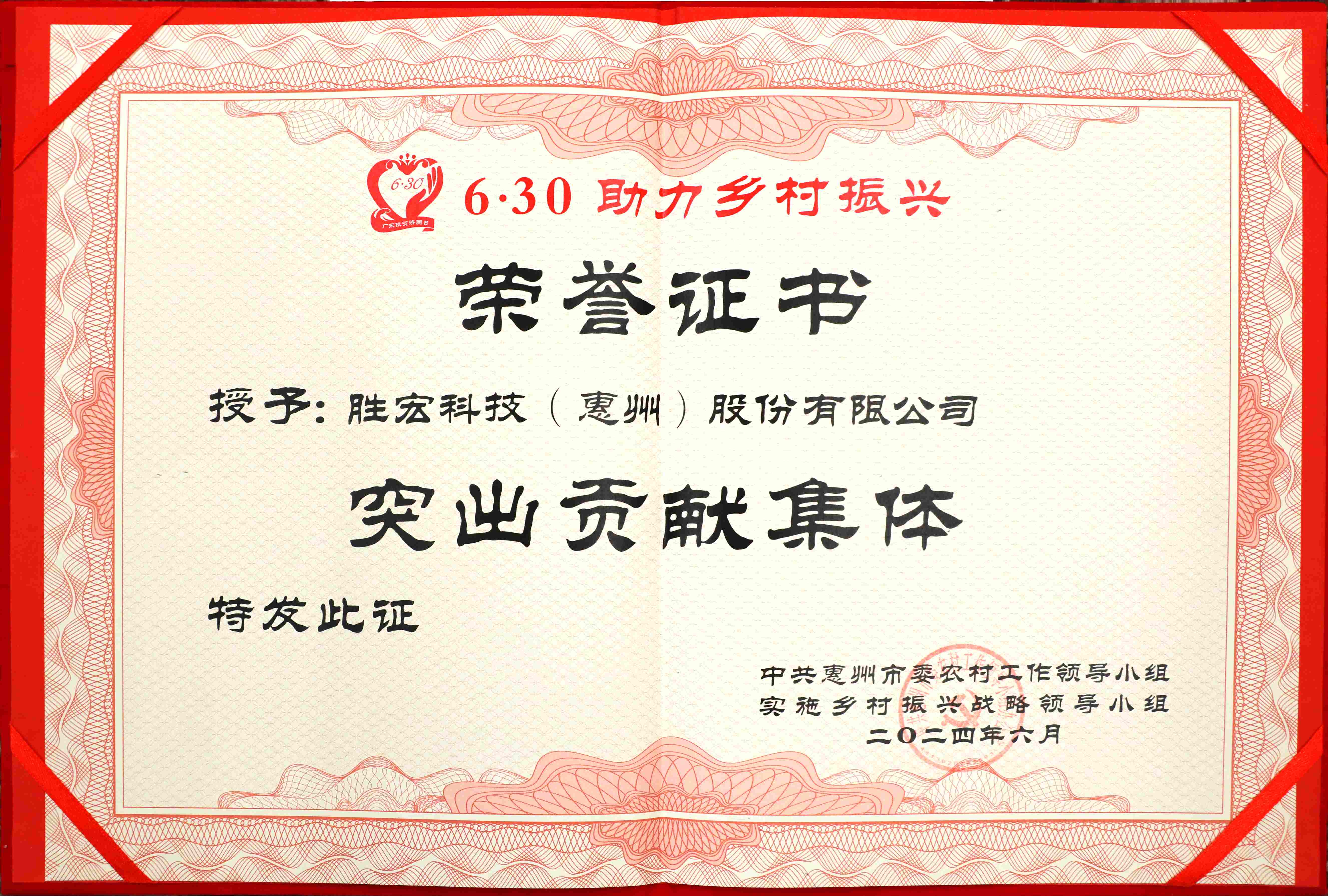 我司财务中心总监朱国强代表公司出席了此次活动,并上台领取了“惠州市2023年度‘6·30’助力乡村振兴突出贡献集体”的荣誉牌匾与奖状。这是我司连续第二年获此殊荣,充分体现了公海710科技在履行企业社会责任方面的积极态度和坚定决心。这份荣誉的背后,是公海710科技以实际行动助力乡村振兴的生动写照。