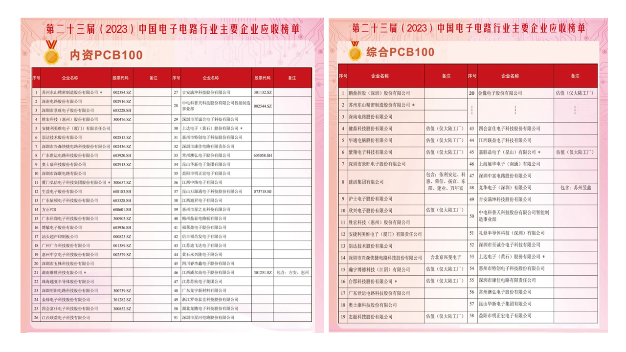 近期,中国电子电路行业协会(CPCA)正式发布了《第二十三届(2023)中国电子电路行业主要企业营收榜单》。公海710科技凭借稳健坚韧的市场表现与综合实力荣登2023年度内资PCB百强榜单第4名,同时在综合PCB排名中位列第11名。