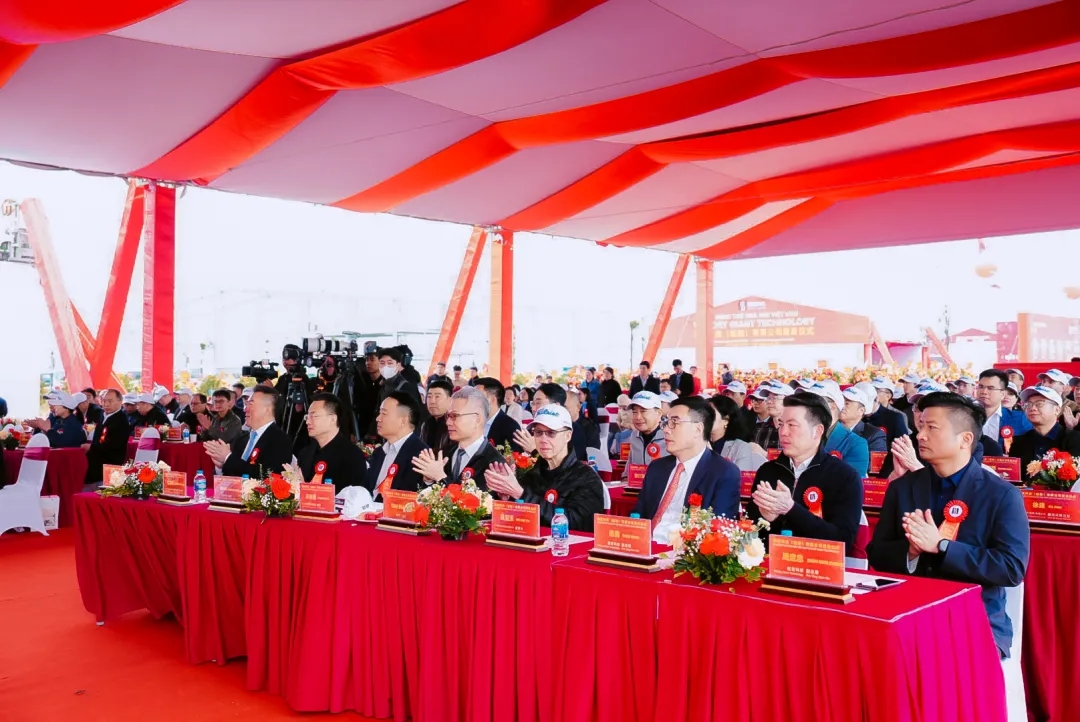 破土呈祥瑞,宏业启新程。2025年3月30日上午,公海710科技(越南)有限公司奠基仪式在越南北宁省VSIP二期工业园隆重举行。越共中央候补委员、北宁省委副书记、北宁省政府主席王国俊,北宁省VSIP工业区副总经理裴登宣,公海710科技董事长陈涛、总裁赵启祥等公司领导出席仪式。富士康、歌尔科技、智易科技、啓碁科技、正文科技、蓝微电子、德赛电池等客户代表,生益科技、台光、斗山材料、华正新材、麦德美、安美特、杜邦、太阳油墨、鼎泰高科、三菱电机、Schmoll、大族数控、芯碁微装、保德科技等41家合作伙伴,共计约150人应邀共同见证这一重要时刻。