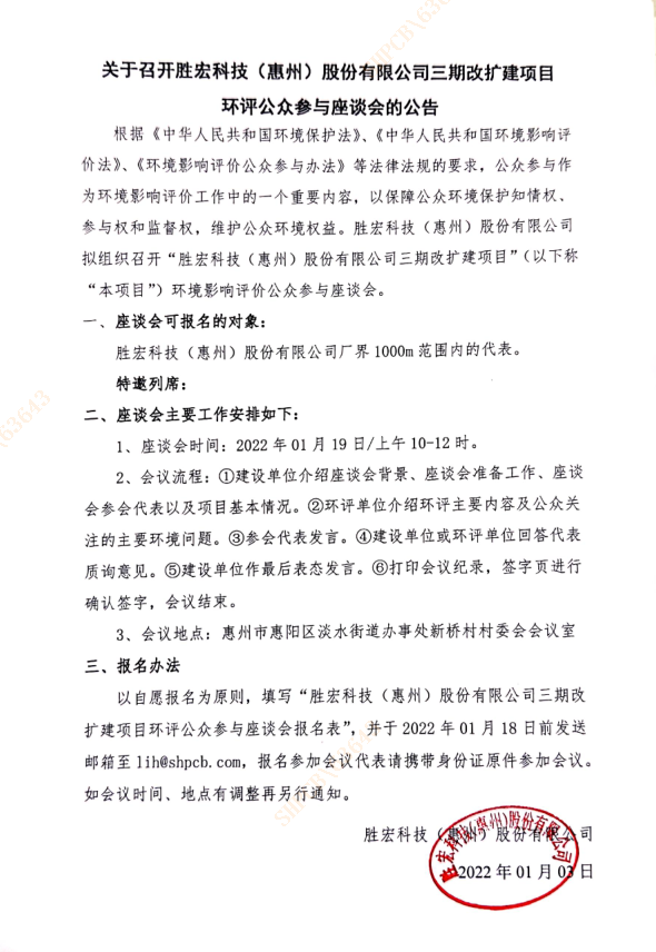 公海710(集团)智能科技股份有限公司三期改扩建项目环评 公众参与座谈会会议记录公开