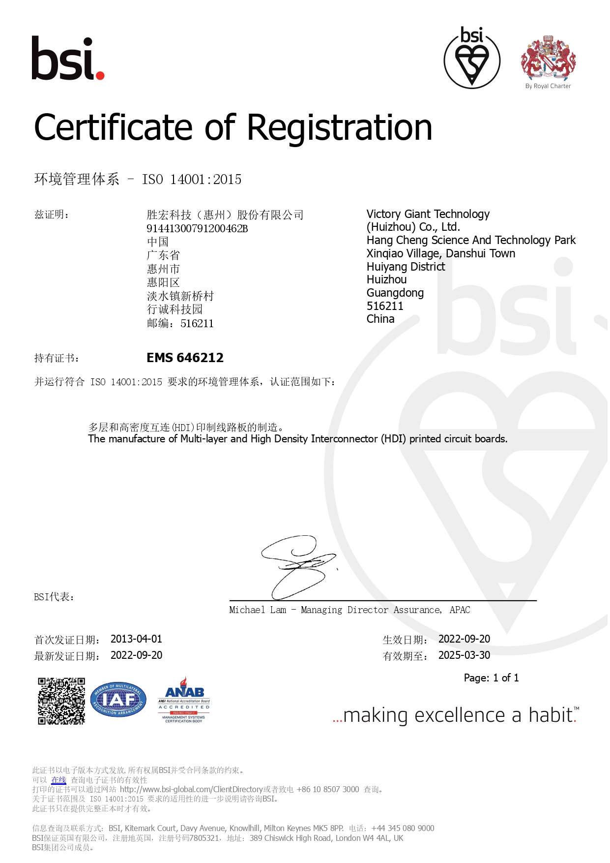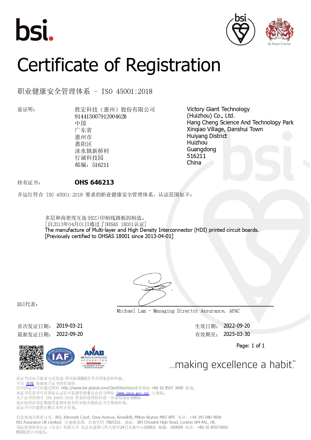 RBA VAP 社会责任审核证书